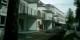 Der Hauptbaukörper mit Saal und Bühne, mit weit auskragendem, flach geneigtem Walmdach, welches von unten nur als