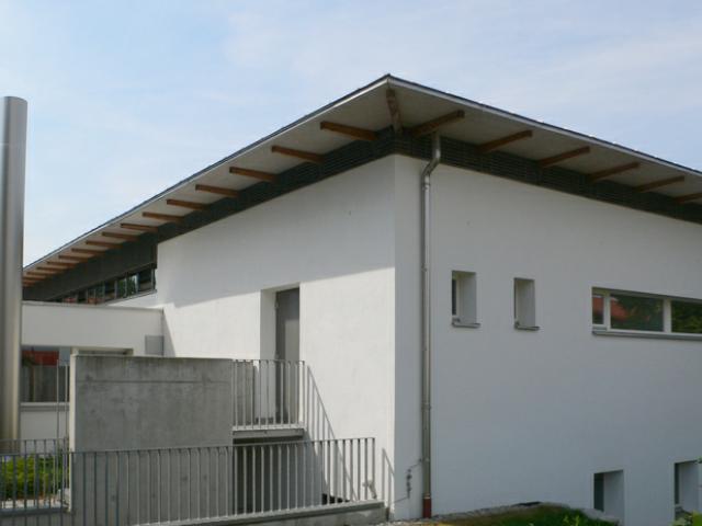 filigrane Dachkante in Erscheinung tritt. Die Kubatur des Hauptbaukörpers reduziert sich optisch durch die Höhenstaffelung.